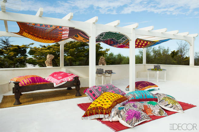 This exotic bungalow on the Adriatic coast in Puglia is the latest creation of swimwear designer Liza Bruce and husband, artist Nicholas Alvis Vega. They have an amazing eye and a magical ability to create the most stunning yet laid back homes . This jet-setting couple have homes all over the globe, and each one is more inspiring than the next. The three that are featured here are in Puglia, Italy, Morroco, just outside Marrakech and Jaipur, India. The eclectic mix of styles, patterns and vibrant colors are bold, beautiful and seemingly effortless with a modern twist.