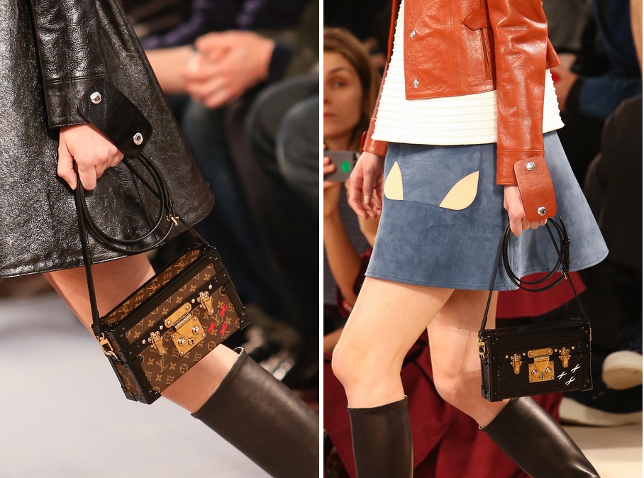 This collection was the debut of Nicholas Ghesquiere for Louis Vuitton. After 16 years of seeing Marc Jacobs behind the famed fashion house, we now see a huge shift with Ghesquiere, formerly of Balenciaga. These are my favorite bags for fall. With my top pick being The Petite-Malle bag, which translates literally to “little trunk”. It comes with a shoulder strap and a removable cover as you can see from the photos.
