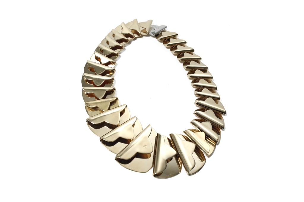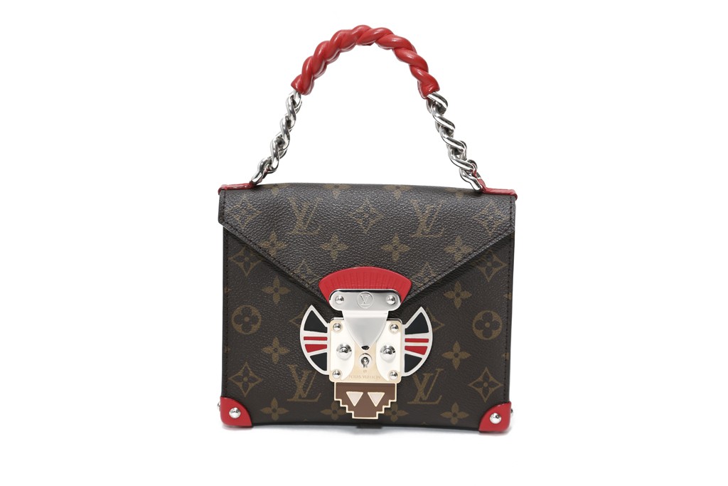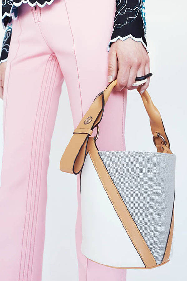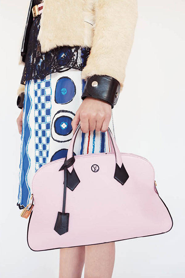 In the Louis Vuitton Resort 2015 Accessories collection there are new “petit malle” bags, printed with pattern and with metallic finishing, top handles and totes. There are some bold accessories, pale green, monogram canvas with graphic closures. It’s a mix of colors, pastels, black, white and red, more subtle and wearable to real statement pieces.