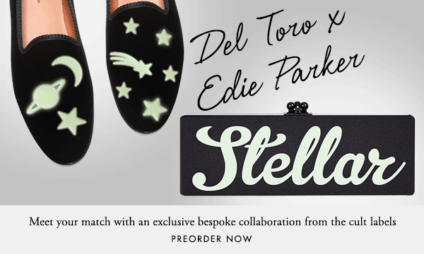 Edie Parker and Del Toro have teamed up for this Bespoke Collection with pieces exclusive to Moda Operandi and available for preorder from now till September 16th. Featuring Del Toro velvet , suede and canvas loafers, leather sneakers, with monograms and glow in the dark decals as well as bespoke and glow in the dark clutches. To match or not to match? That is the question…