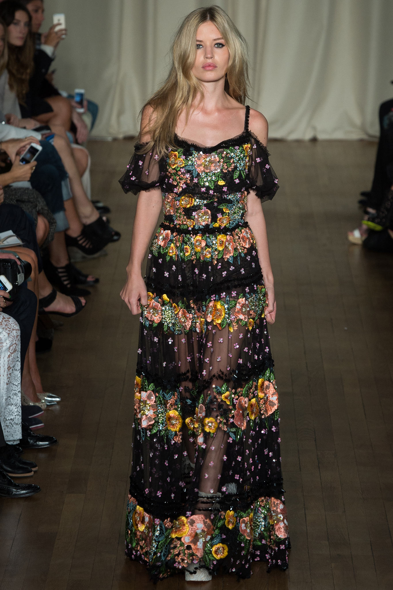 Another fairytale collection from Georgina Chapman and Keren Craig at London Fashion week. For the 10th year anniversary of their label, Marchesa, they rolled out a “rock-‘n’-roll gypsy fantasia.” It was a wonderland of tulle and flowers and lace. The woodstock era theme transformed into the ultimate of bohemian luxe.