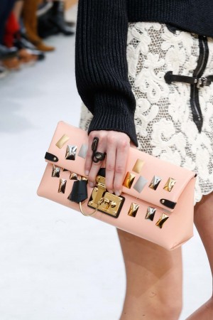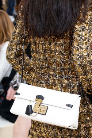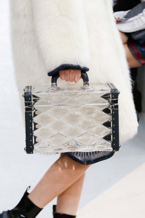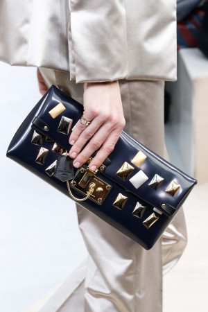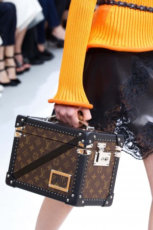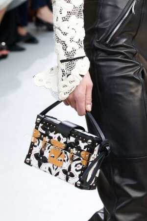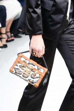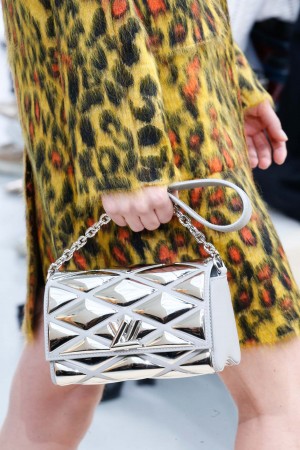 Nicolas Ghesquiere has redone the classic Louis Vuitton trunk into another mini trunk handbag, well not so mini… it comes in Metallic Epi Leather, Malletage, Monogram and Leather. There is an exterior nameplate that can be customized with your monogram. The Petite Malle and Twist styles came back with Leopard, Croc, and Floral prints. Quilted and embellished with gold locks and hardware, the bags strut down the runway,loving them all…