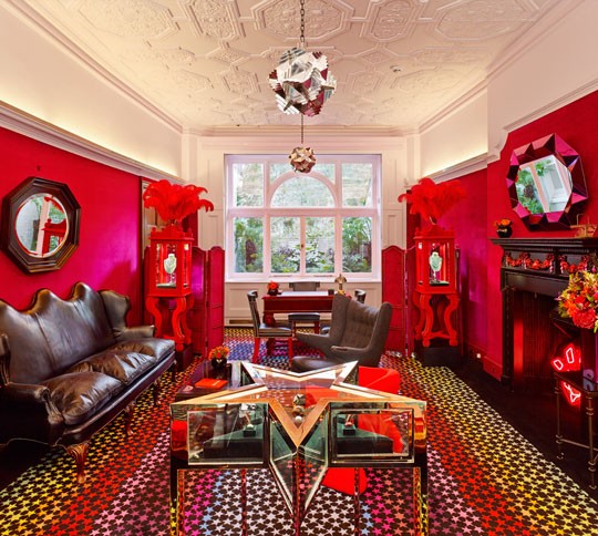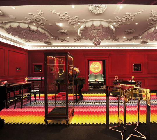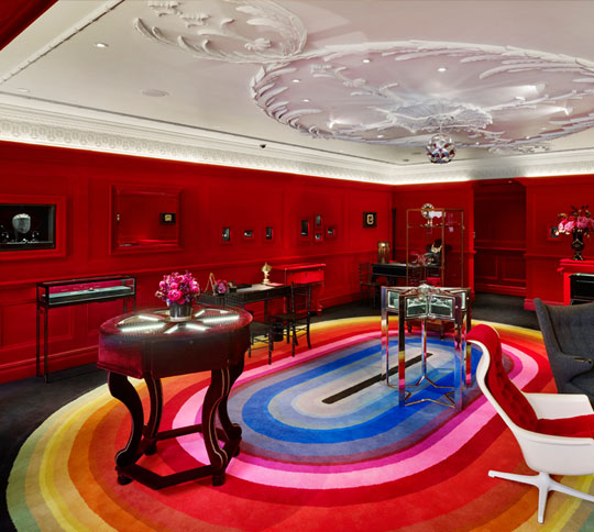 Solange Azagury Partridge’s London home was one of my favorite posts on Love it Luxe. So after following and admiring her design aesthetic both in her homes and her stores for so long, I was really excited to learn that this famed jewelry designer also has an interior line of made to order items, including …. yes! the rainbow rugs, along with neons and some home accessories, each one more vibrant and wild then the next!
