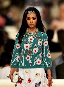 DUBAI, UNITED ARAB EMIRATES – MAY 13: A model walks the runway at the Chanel Cruise Collection 2014/2015 at The Island on May 13, 2014 in Dubai, United Arab Emirates. (Photo by Francois Nel/Getty Images)